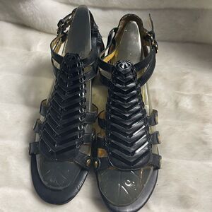 Arturo Chiang Leather black ankle straps wedge sandals SZ10M