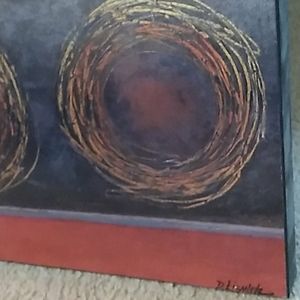 24" x 36" wall art piece, a little wear & tear from falling to the floor once, otherwise still remain in good condition for display on the right wall!