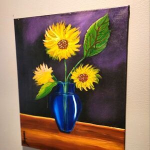 Artwork original signed by the artist, me. acrylics on canvas, sunflowers.