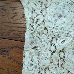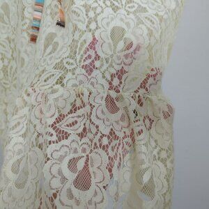Arty Blush Lace Boho Tunic Flutter ruffle short sleeve Beige Bohemian Gypsy S/M