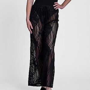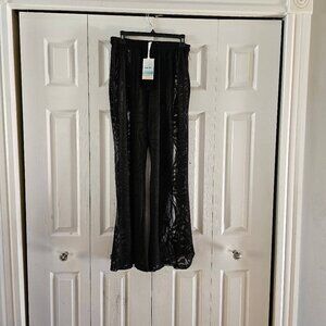 Aruba Blue Women's Black Tropical Crochet Pull-on Wide leg Beach Pant Size Small