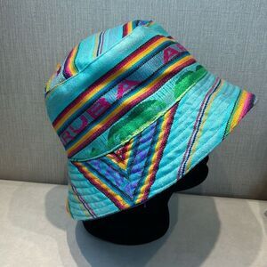 Aruba Reversible Bucket Hat Blue Turquoise Stripe Sun Packable Travel Outdoors