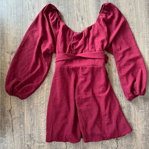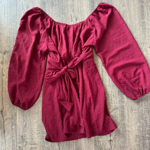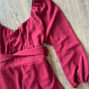 Arula Adelyn Swiss Dot Bow Back Swiss Dot Mini Dress in Cranberry