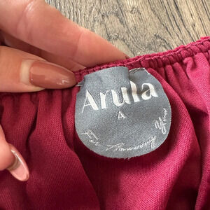 Arula Adelyn Swiss Dot Bow Back Swiss Dot Mini Dress- Cranberry