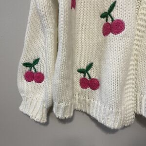 Arula Charley Chunky Knit Cherry Cardigan, Size A, 1X Ivory Novelty Oversized