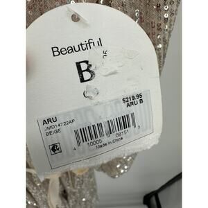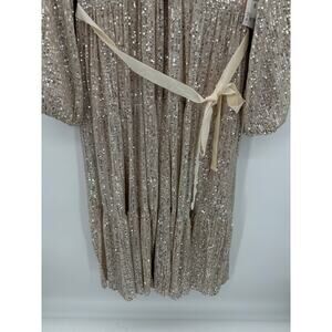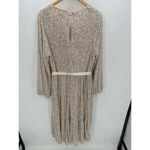 Arula Dress Women 2X Beige Sequin Shimmer Long Sleeve Maxi Gown Holiday Event