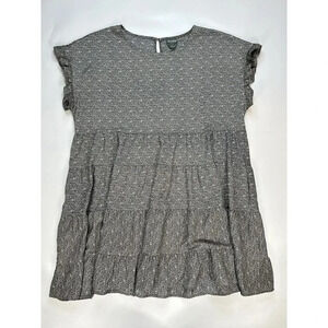 Arula Dress Womens 1X Mini Babydoll Black White Floral Pockets Flutter Sleeve