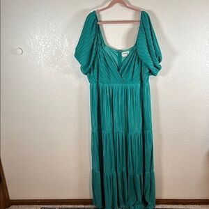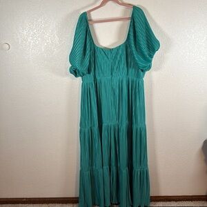 Arula Teal Accordion Pleated Tiered Milkmaid Maxi Dress Size 2X (B)