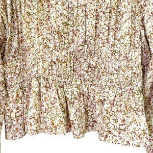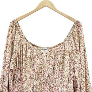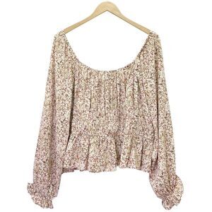 Arula Top Autumn Floral Long Sleeve Babydoll Blouse Taupe Rust Plus Size B | 2X