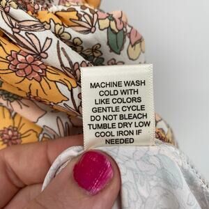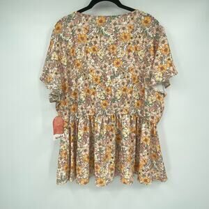 Arula Women's Ivory Yellow Peach Floral V Neckline Peplum Blouse Size 2X