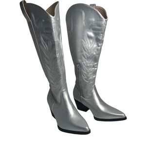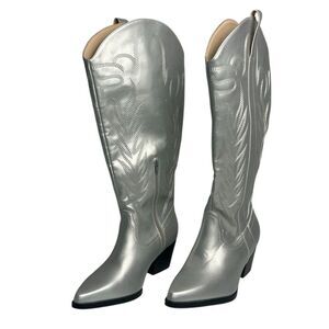 Arula Women's Silver Knee-High Cowboy Boots Size 9 Western Style