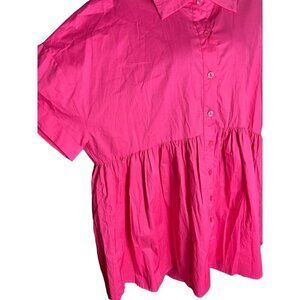 Arula Women's XL Button Up Shirt Tunic Dress Hot Pink Collared Barbiecore Preppy