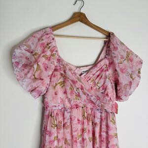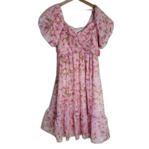 Arula Xquisite You Dress Womens XL Pink Floral Puff Sleeve Midi Ruffle Spring