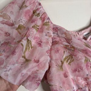 Chiffon-like sheer outer with beautiful allover pink floral watercolor print