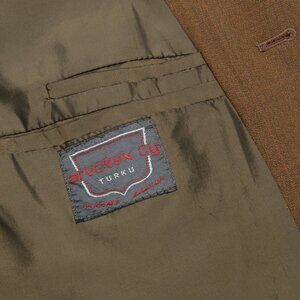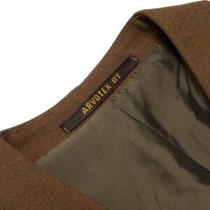 The three-button blazer by Arvotex OY emerges as a sober yet technically articulate embodiment of mid-century Nordic tailoring, crafted in Turku, Finland, at the intersection of civic duty and climate-adapted practicality. Rooted in Finland’s post-war rationalist design ethos, Arvotex garments catered to municipal professionals, civil servants, and formal civilian dressers, marrying soft tailoring with utilitarian fabrics in a manner that privileged restraint, respectability, and durability over aesthetic indulgence. This particular blazer reflects the brand’s founding principles with its institutional sensibility, subdued plaid palette, and deliberately unadorned silhouette, structured for daily repetition in cold climates and formal social settings. Constructed with a fully lined, softly structured tailoring methodology, the garment employs padded shoulders, a four-button single-breasted stance, and clean internal finishing designed for durability across multiple wear contexts.