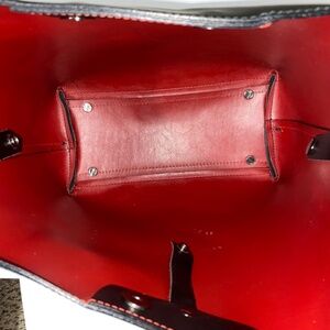 Red leather inner lining with small zipper pouch for extra storage