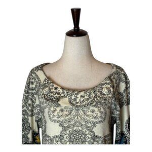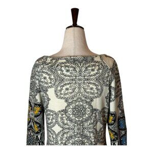 Aryeh Anthropologie Dress Women Medium Ivory Geometric Print Knit Fit And Flare