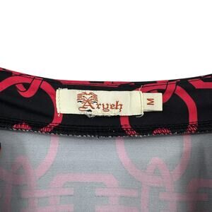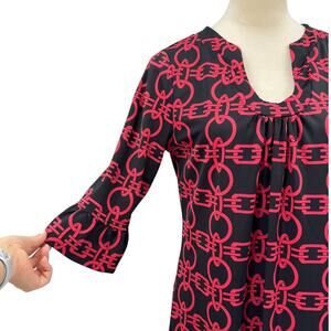 Aryeh Black & Red Geometric Chain Print 3/4 Flounce Sleeve Mini Shift Dress