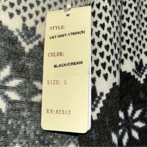 Aryeh | New Black Cream Fair Isle Open Front Sleeveless Cardigan, Large