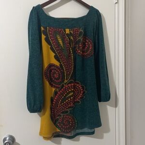Aryeh Teal and Yellow Long Sleeve Dress Size M