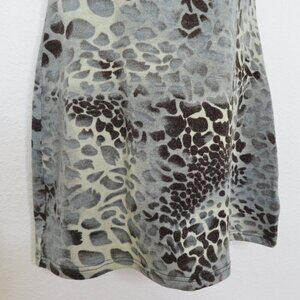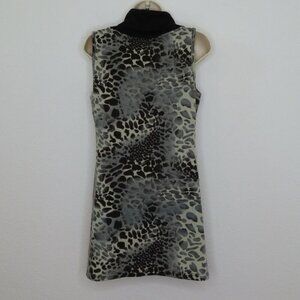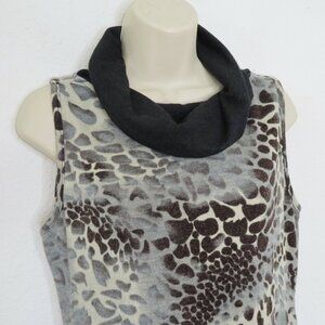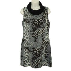 Aryeh Womens Large Cowl Neck Animal Print Black Gray Sheath Sweater Dress