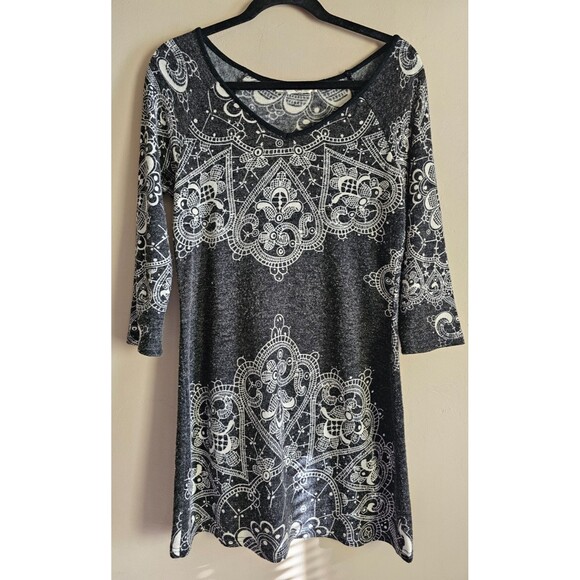 Aryeh Women's Paisley Print 3/4 Sleeve Knit Dress Gray Ivory Small Casual