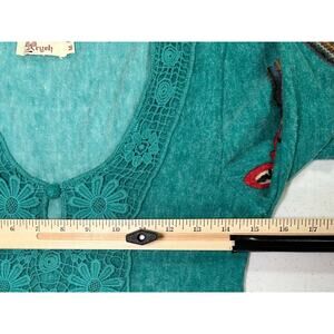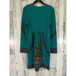 Item: Aryeh Womens Sweater Dress Teal Green Floral Butterflies Boho Lace