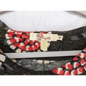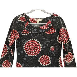 Aryeh by Anthropologie Floral Starburst Dress Small Red Gray Retro Mod 60s Mini