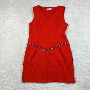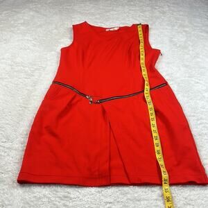 Lovely amount of stretch in this sleeveless dress by Aryeh. Waist is dropped basque with zipper accents, scoop pockets, and over skirt slit. There is a side zipper as well, but has enough stretch to pull over.