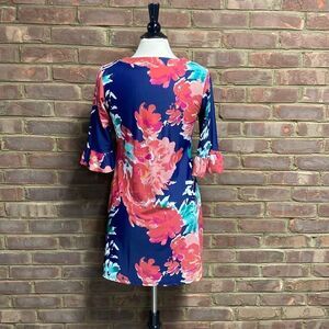Aryeh Navy Multi Color Ruffle Sleeve Dress Size Small NEW