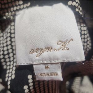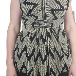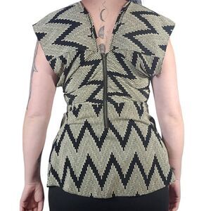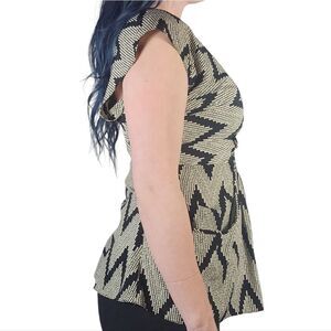 Aryn K Abstract Cevron Short Sleeve V neck black/beige blouse