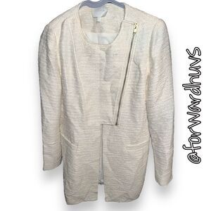 Elevate your winter wardrobe with this sophisticated Aryn K Cream Tweed Pea Coat/Jacket in a chic XS size. The coat is elegantly lined and features a half zipper front for versatile styling. Zipper details on the sleeves add a touch of edginess, while the A-line cut and stylish detailing on the back ensure a flattering fit.