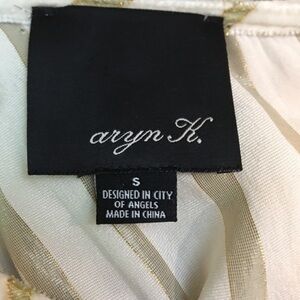 Silk velvet top with cream, gold and khaki stripes. Gentle gathers on left hip.