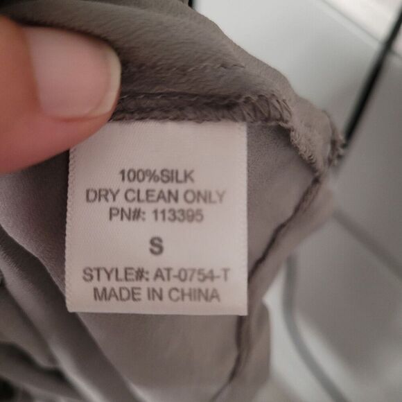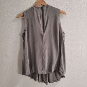 Aryn K Tank Top Women's Size S 100% Silk Grey Pleated Metal Embellishments