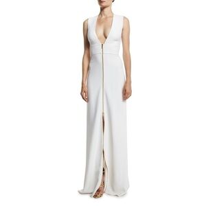 As Is Cushnie Et Ochs Plunging Zip-Front Cady Gown White
