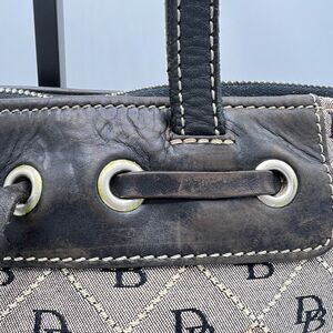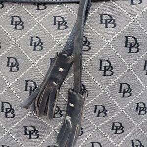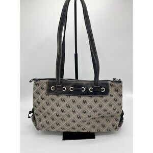 As Is Dooney & Bourke Shoulder Bag Y2K Logo Signature Canvas Black Gray Tassel