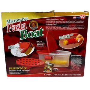 The Microwave Pasta Boat offers a seamless way to cook, drain, and serve pasta. Its unique design ensures even cooking and easy draining, making meal preparation efficient and mess-free. A versatile kitchen tool, it includes a bonus steamer rack for steaming vegetables and more, enhancing its utility.