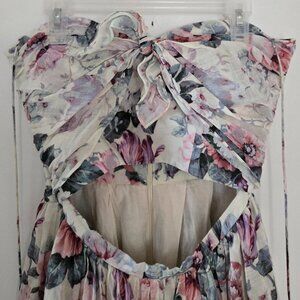 Inspired by the sweet innocence of summer days, Zimmermann's Jasper Tie Dress is cool, carefree perfection. A subdued floral design dances across this breezy cut-out midi complete with a knotted bandeau neckline and shoestring halter straps. Feel feminine and carefree in the stunning Jasper Halterneck Dress. Patterned with a washed floral print and alluring sweetheart neckline detail, this dress frames the décolleté beautifully. As seen on Anne Hathaway!