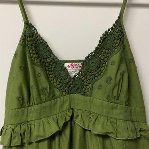 As U Wish Avocado Summer Dress with Crochet and Ruffle Detail