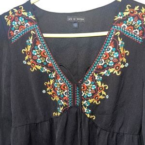As U Wish Black Embroidered Neckline Lightweight Dress - Size XS