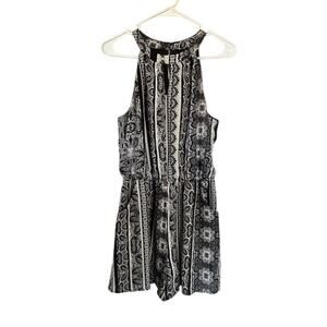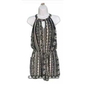 As U Wish Black and Tan Paisley Print Keyhole High Neck Romper size Large