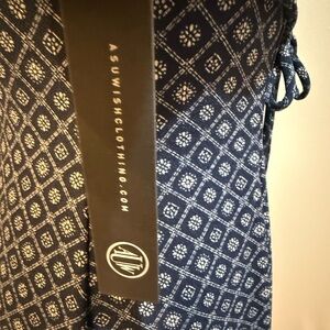 This stylish sundress by As U Wish features a flattering V-neckline and charming puff sleeves, perfect for casual or work settings. The blue and white polka dot pattern adds a touch of vintage flair, while the midi length and lightweight fabric ensure comfort and elegance.