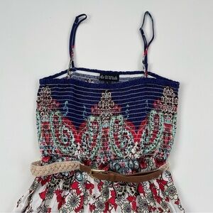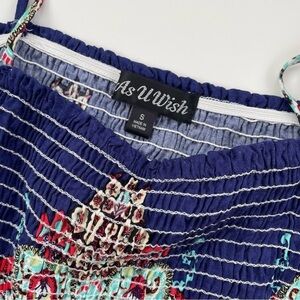 As U Wish Blue White Smocked Belted Paisley Summer Dress Size Small NWT
