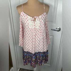 As U Wish Boho Tunic Cold Shoulder Dress Small