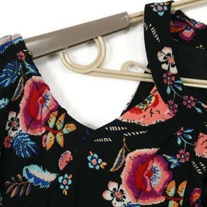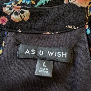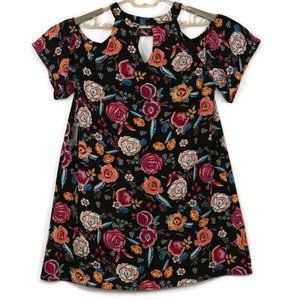 As U Wish Cold Shoulder Dress Black Pink Floral Keyhole L Large