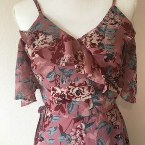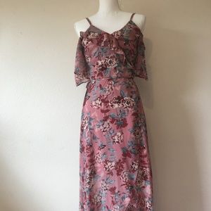As U Wish Cold Shoulder Floral High Low Maxi Dress