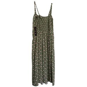 Chic midi dress with a green and white pattern. - Adjustable Straps - Pockets - Built-in bra