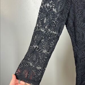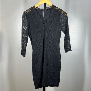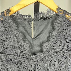 This elegant black lace dress is perfect for any occasion. Its intricate lace design adds a touch of sophistication and style. Dress is lined. Has some stretch. Hugs curves