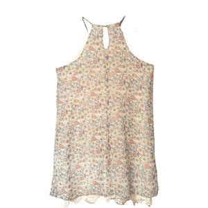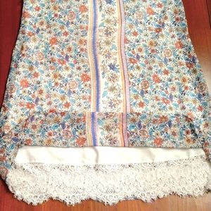 As U Wish, Floral A-Line Dress w/ Lace Trim Hem, Size S, White w/ multi color
