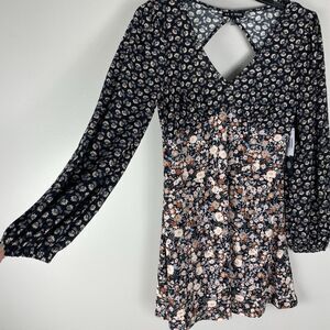 As U Wish Floral Dress Sz Small Whimsy Goth Grunge Balloon Long Sleeve Fall NWT